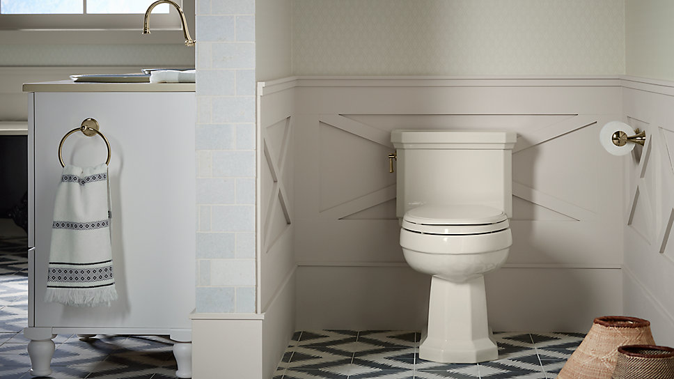 Bộ sưu tập Kathryn nắm bắt được dáng vẻ mang phong cách cổ điển với những đường nét góc cạnh và các chi tiết trang trí của phong cách thiết kế những năm 1930. Chiều cao bồn cầu một khối này tạo sự thoải mái khi ngồi và thân bồn cầu kiểu dáng thon dài nhỏ gọn, cùng với thiết kế con thỏ ẩn mang lại sự thoải mái khi sử dụng, vẻ ngoài bóng bẩy và giúp việc vệ sinh trở nên đơn giản. Công nghệ xả tiết kiệm nước đáng kể mà không gây ảnh hưởng đến hiệu suất.