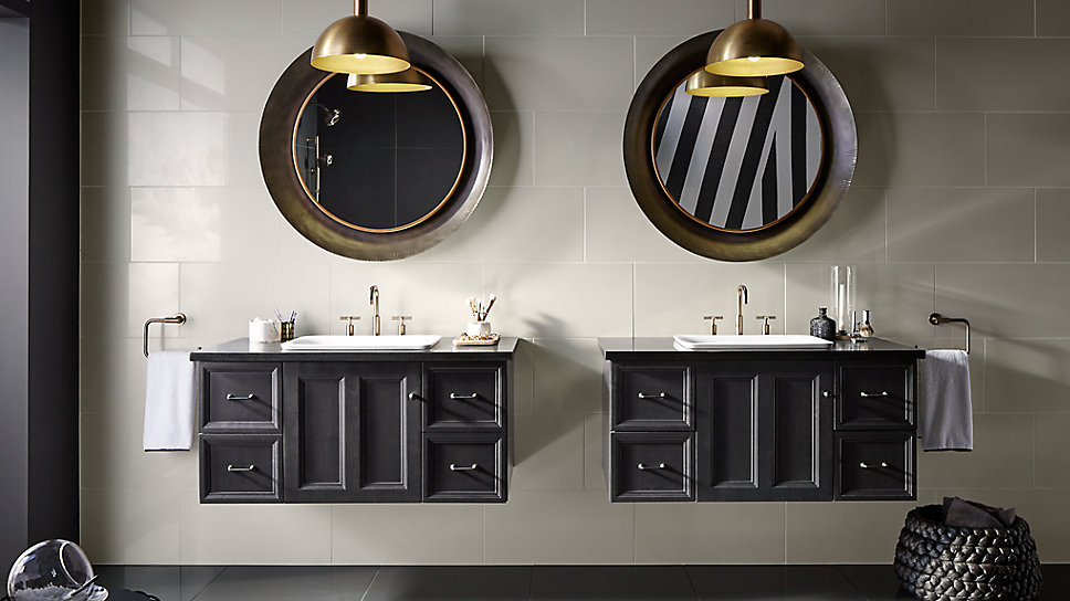 Nội thất treo tường trong phòng tắm giúp không gian tăng thêm tính cởi mở và nét quyến rũ hiện đại.